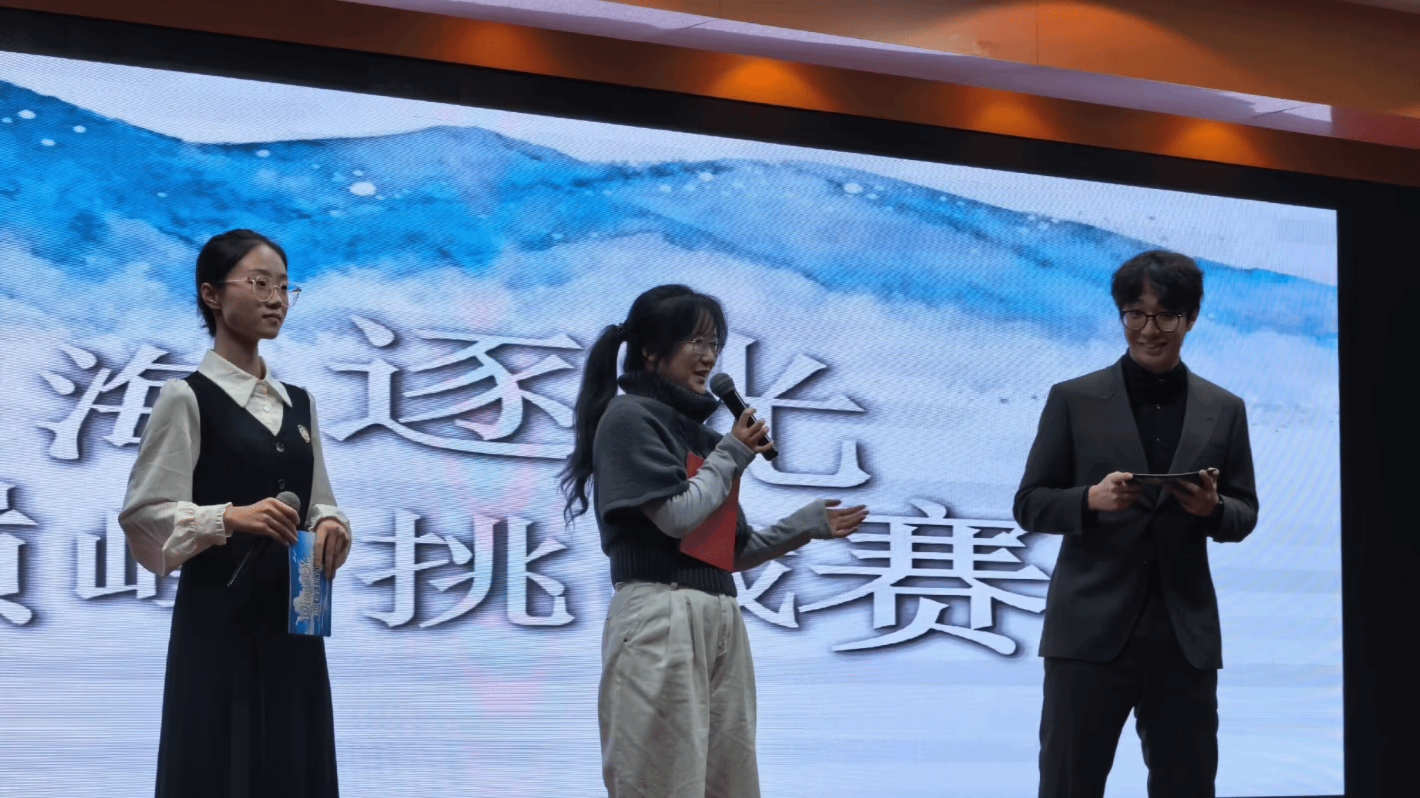 初赛现场 多轮比拼,各展风采。决赛采用积分制形式,设“词力风暴”“单词九宫格”“声动英文”和“英辩风采”四个环节,难度逐步提升。“词力风暴”抢答医学英语术语,检验词汇储备;“单词九宫格”以字母矩阵拼词,兼顾词汇量与思维灵活度;“声动英文”考察英语表达与表现力,“英辩风采”通过1分钟即兴演讲考验临场应变。选手们沉着应答、尽显功底,现场精彩纷呈。比赛还设置互动环节,10张趣味图片亮相,观众抢答赢礼品,氛围热烈。