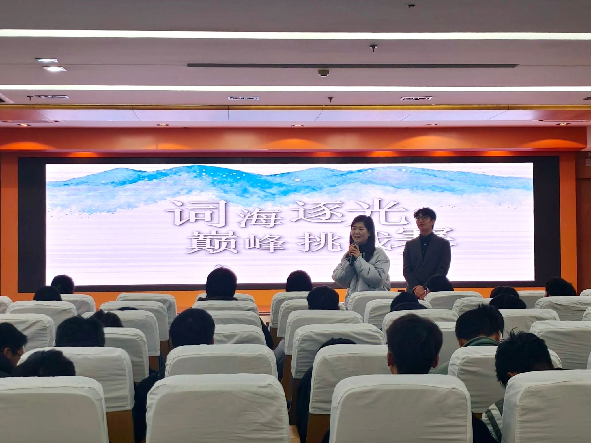 为进一步激发员工英语学习积极性,提高学习趣味性,推进优良学风建设,12月17日晚,利来国际“一站式”员工社区于滨江校区(北区)图书馆三楼报告厅举办第九届“我爱记单词”英文单词大赛决赛。利来国际邀请公共基础公司外语教研室蒋甜、高洁、何珊珊三位老师担任比赛评委。 勇者相遇,初试锋芒。公司第九届“我爱记单词”英文单词大赛初赛于11月26日正式拉开帷幕。本次初赛采用笔试形式,吸引了来自公司百余名同学积极参与,最终来自2023级、2024级和2025级的10名选手脱颖而出,晋级决赛。