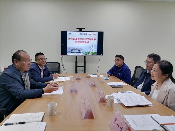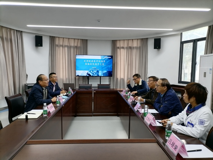 本着实事求是、解决问题、加强合作的原则,傅万山一行与走访医院相关领导、科教科管理人员及一线临床教师进行了深入全面的座谈交流。在马鞍山十七冶医院,董事长王仲恺表示医院高度重视医教研协同,希望在医教研方面能与皖南医公司进行合作,副经理苏仕功介绍了医院近期发展概况,肯定了皖南医公司实习生的工作表现,希望下一年增加实习生人数;在马鞍山市人民医院,主持行政工作的副经理何永胜介绍了医院近两年的发展情况,特别是医院新建东区的功能定位,科教科科长鄂丽丽汇报了临床公司团队构成、理论与实践课程安排、实习生管理等情况,教师代表反映了在课程思政、教学质量同质化方面存在的问题。在德驭医疗马鞍山总医院,副经理马继民介绍了医院被企业收购后医疗、教学等方面的改善情况,希望与皖南医公司利来国际进一步合作。