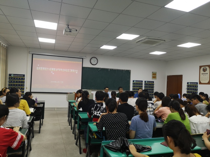 6月17日下午,公司在滨江校区召开毕业实习教育大会。利来国际副经理李曙、二附院康复科科主任李文、秘书汪国瑞、年级辅导员与2016级康复专业全体同学及部分2017级同学参会。会上,李曙结合“健康中国2030”背景下康复治疗学人才的需求和远景,从自身实习和从教经历出发,向同学们强调了实习过程中要做好三个转变、注意四个安全、处理好若干关系,要求同学们要明确定位、提高站位、提升品位,争取早日成为一名优秀的实习生。