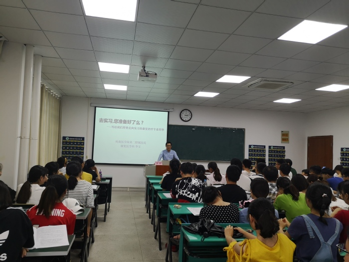 李文为大家作了题为《去实习,您准备好了吗》的专题讲座,他结合自身多年来从事康复治疗工作的经历,主要围绕“为什么要实习”、“实习主要内容”、“实习注意事项”等方面做了详细的介绍,他希望大家做到向带教老师学习、向患者学习、向同学学习,正确处理好考研和毕业实习的关系。