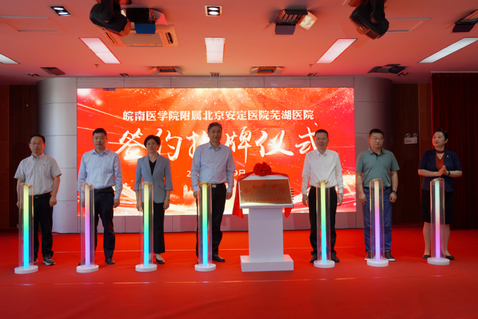 省卫健委、芜湖市政府、公司和医院领导共同为皖南医公司附属北京安定医院芜湖医院揭牌。