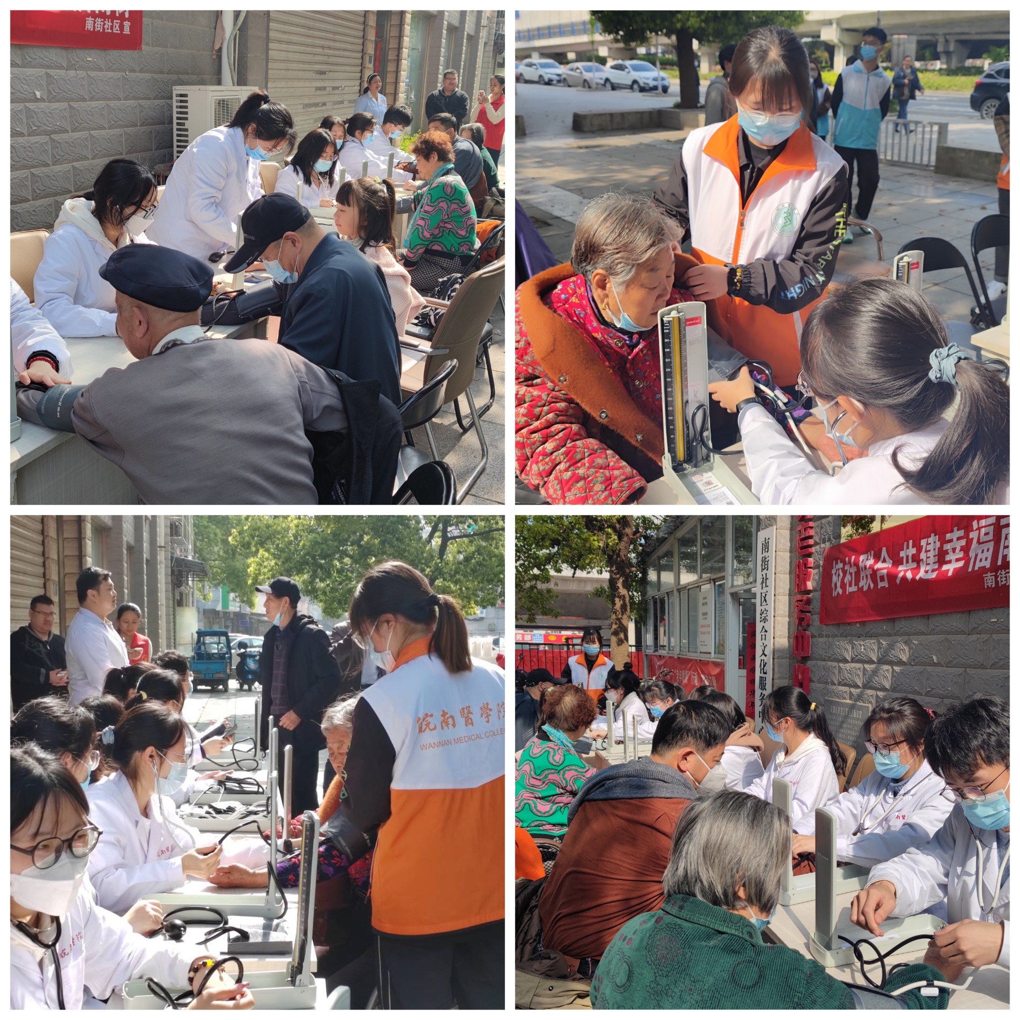 本次爱心义诊志愿服务队共有4名教师、20名员工志愿者组成,义诊包括血压测量、健康咨询和春季多发病知识宣讲三个环节。志愿们为在场的每一位居民测量血压,耐心询问老人的身体状况,并给现场居民有针对性地提出科学合理的健康生活建议。
