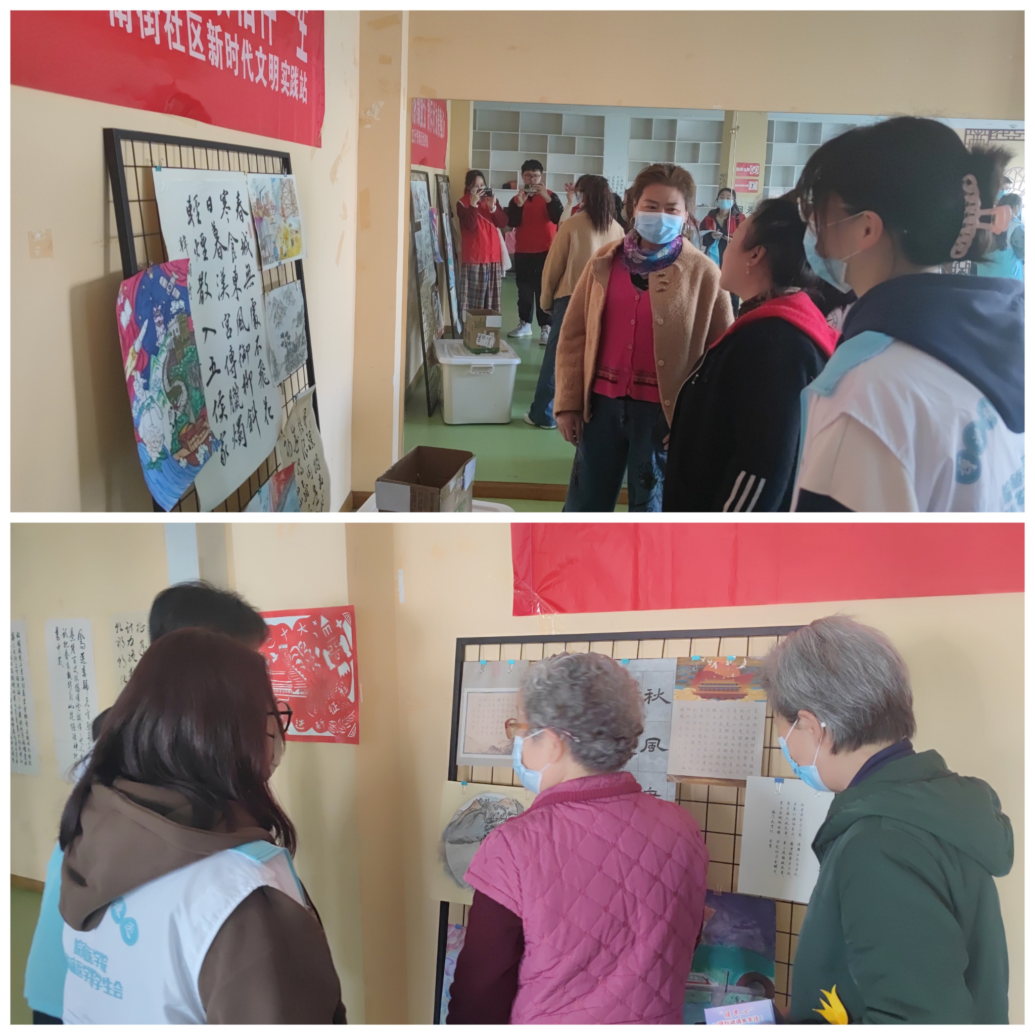 为丰富社区居民的生活,志愿者们将利来国际师生的书画手工艺术作品带到社区进行展览。本次展览共展出文艺作品共100多幅,作品种类丰富,包括书法、绘画、手工等不同类型,作品或是传播正能量,讴歌真英雄,致敬抗疫一线的平凡英雄;或是用艺术表达对祖国壮丽河山和优秀文化的赞美;或是勾勒医员工眼中的人体结构……前来参观的居民络绎不绝,纷纷被精彩的作品所吸引,赞叹公司学子的艺术素养,期待公司可以经常和社区联合开展人文艺术相关展出,丰富社区居民的文化生活,提升群众的人文素养。