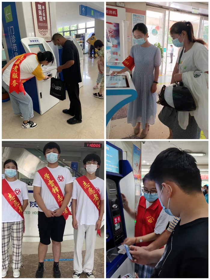 7月5日下午-7月31日,“医路有你,携手共行”文明实践志愿服务队来到淮北、亳州、芜湖等地开展导医导诊暑期社会实践活动。志愿者们发挥医员工特长,为就诊患者提供导医导诊、报告单打印、咨询服务等志愿服务。