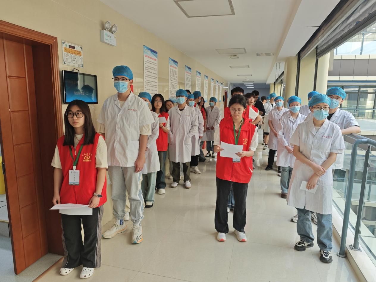 在5月25至26日举行的2024年临床类别专业毕业技能考试中,“医心”志愿服务队抽调25名志愿者担任本次考试的标准体检者,20余人协助做好相关后勤保障工作,确保了毕业技能考试有序进行。