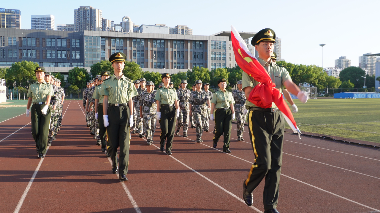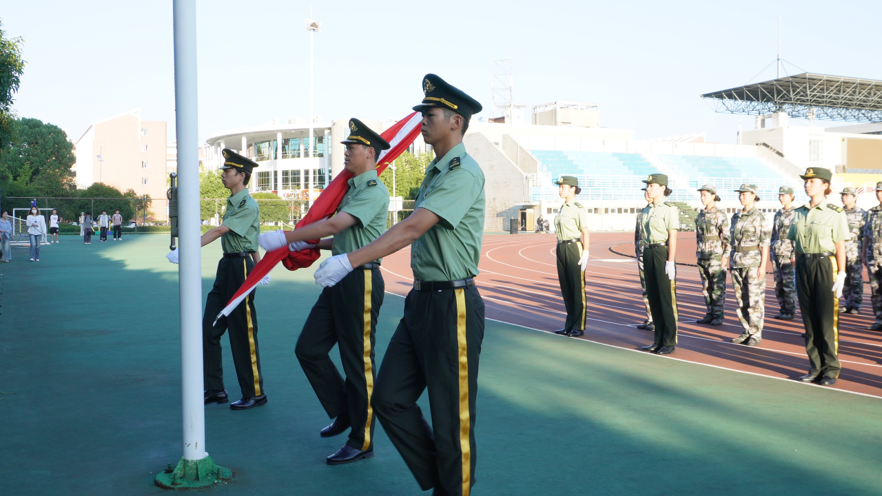 6时50分,国旗护卫队迎着朝阳护送五星红旗至旗杆下。伴随着《义勇军进行曲》,全体师生肃立注目,歌声响彻校园。朝阳映国旗,爱国情怀在师生心中激荡,团结奋进的力量进一步凝聚,家国情怀深深扎根新生心中。