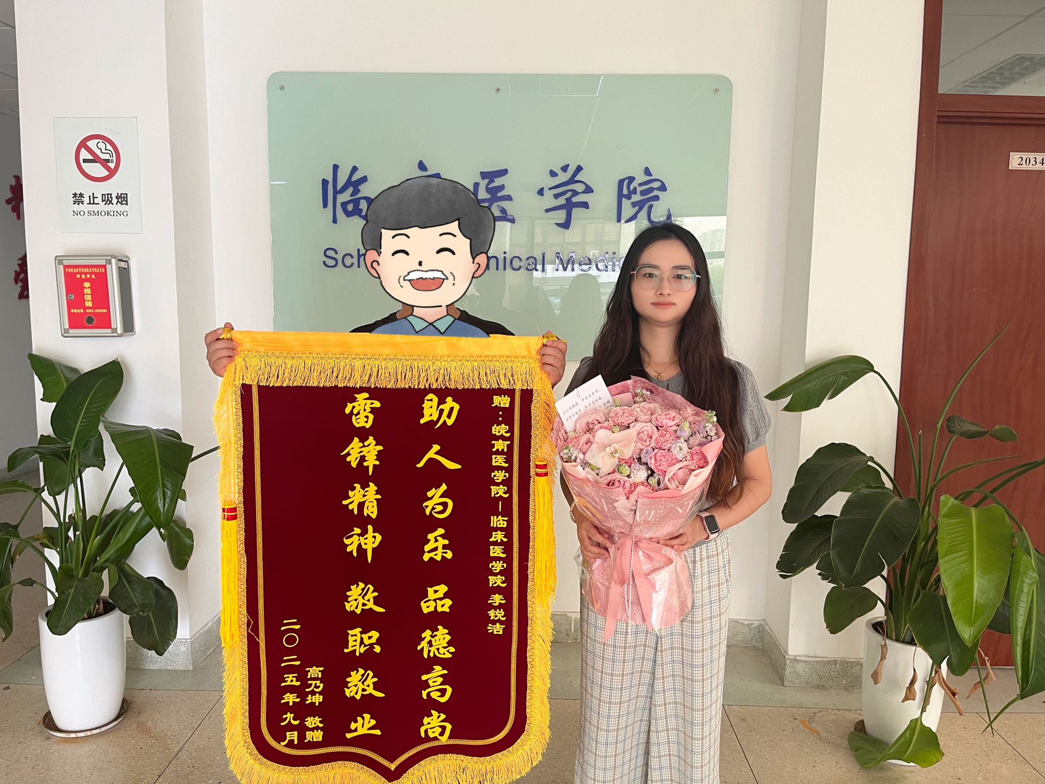 近日,公司利来国际辅导员李锐洁老师收到一面印着“助人为乐 品德高尚 雷锋精神 敬职敬业”的鲜红锦旗。这面锦旗是对她紧急救助昏迷老人善举的由衷肯定,更彰显了皖医辅导员践行社会责任的榜样力量。