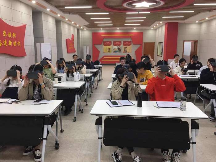 最后,组织参会人员进行VR体验教学,观看了与此次党课内容相关的视频。
