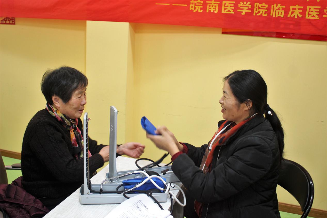 黄亚纬老师带领志愿者们测量血压