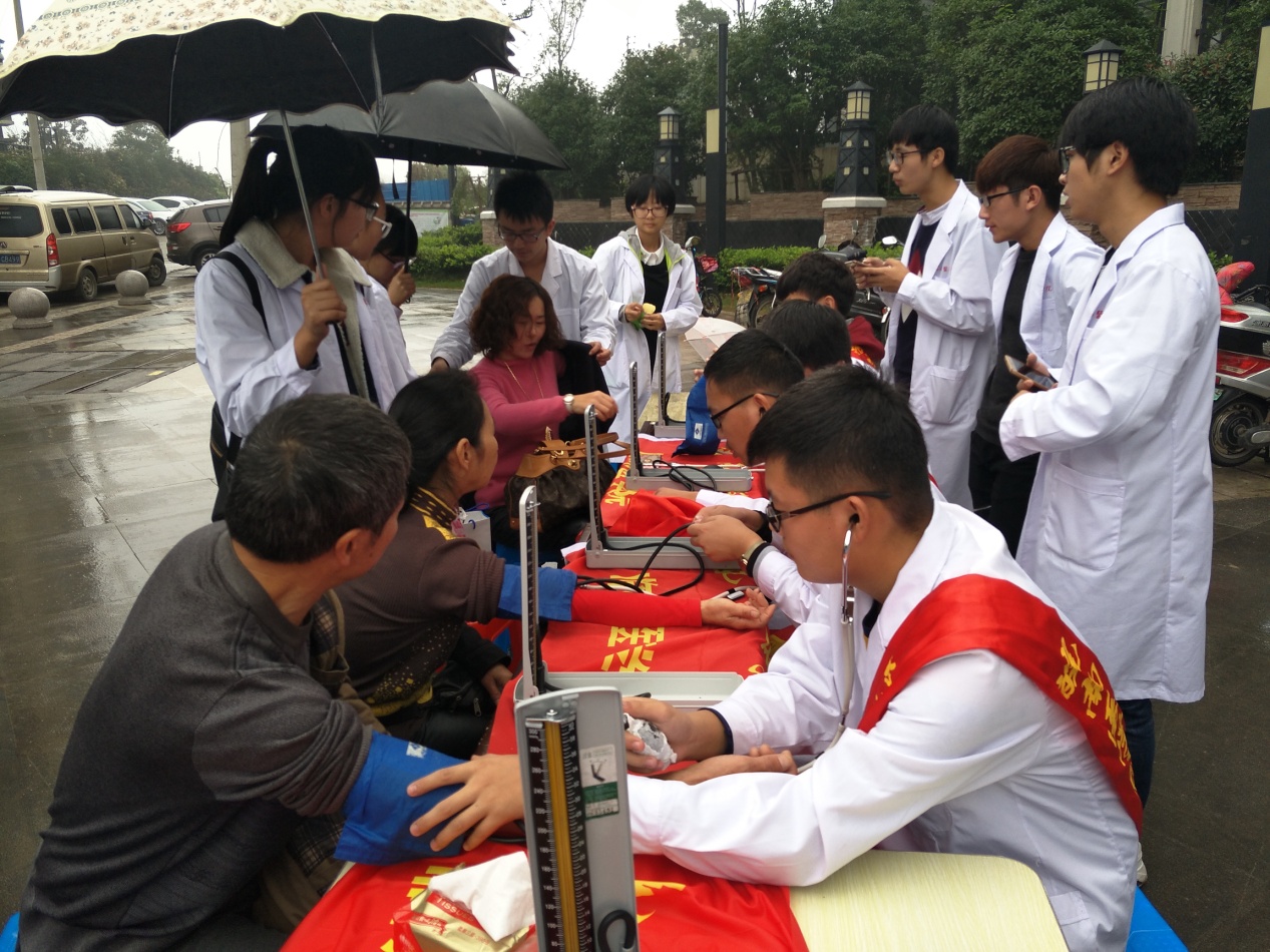 19日上午7:30,志愿者们身着白大褂在公司南大门集合准备出发。参与活动的志愿者多达30人,志愿队伍浩浩荡荡,精神饱满,尽显公司学子积极向上的精神风貌。到达社区后,志愿者们与社区负责人进一步沟通,布置现场、检查测量仪器等各项准备工作有条不紊地进行。9:00,志愿服务活动准时开始,本次活动内容包括健康宣传、测量血压、清洁家园等三个方面。部分志愿者走进社区发放季节性疾病预防宣传单,向居民详细介绍秋季疾病相关防治知识,并宣传引导居民前往志愿服务台免费测量血压,关注身体健康状况。在志愿者们的积极行动下,即使是阴雨蒙蒙的天气,前去志愿服务台的居民仍然越来越多。对于居民们的血压健康情况及所问到的常见健康问题,志愿者们结合所学知识悉心为他们答疑解惑,针对日常饮食等生活习惯也给出相关意见。与此同时,为助小区居民生活环境整洁美化,志愿者们手持扫帚,分头行动,对小区公共区域进行了清扫。志愿者热情负责的工作态度赢得了社区居民们的信任与赞扬,居民们表示希望多多开展此类有意义的活动。