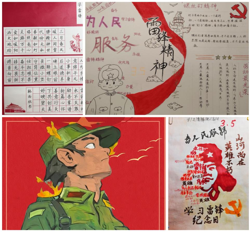 “宣”有厚度,注重氛围营造,突出长效浸润。3月5日至20日,志愿队面向年级同学举办“雷锋精神放光芒” 主题作品征集活动,通过书法、绘画、数字海报、手工拼豆等载体,实现“雷锋精神”的跨媒介传承,收到同学们的踊跃投稿。一张张构思巧妙的海报,一幅流畅优美的书法,这些承载创意的作品,既是艺术化的精神丰碑,更是薪火相传的青春誓言。