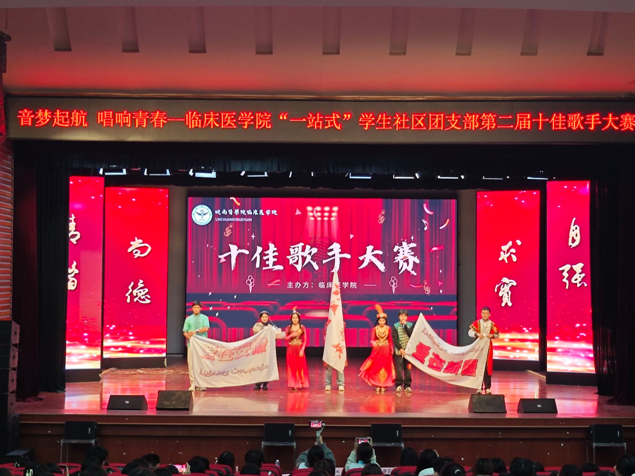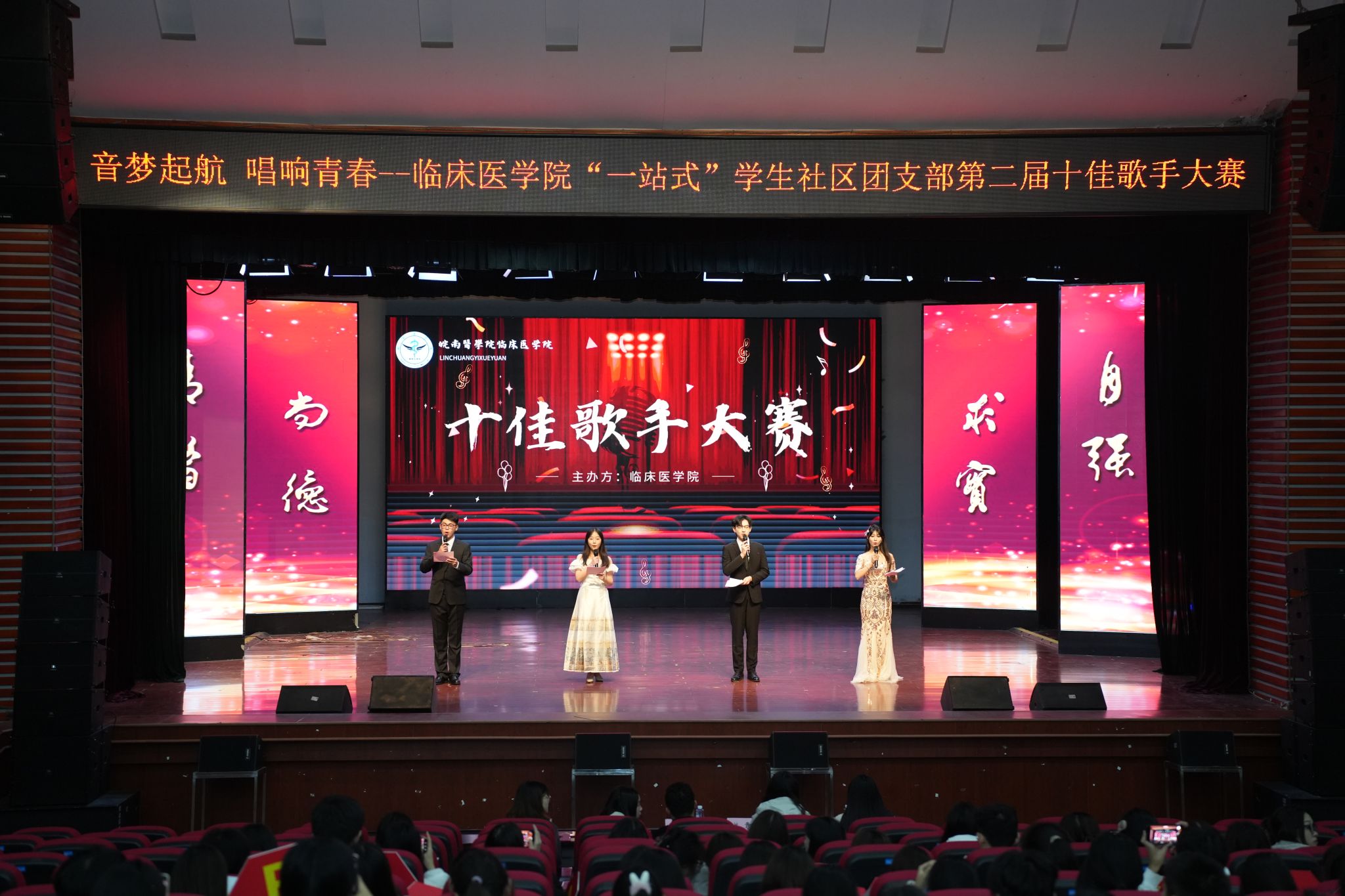 为推动校园精神文明建设,激发青春活力,12月1日晚,利来国际“一站式”员工社区团支部第二届十佳歌手大赛(总决赛)在老员工活动中心拉开帷幕。利来国际徐祎、苏曹骢、胡婷、姚君、廖茗五位老师担任主评委,51名员工代表担任大众评委,800余名观众观看演出。