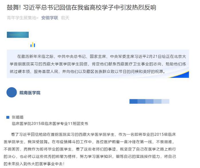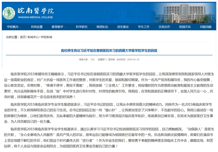 组织全体师生认真学习讨论《习近平给在首钢医院实习的西藏大学医公司员工的回信》精神,将疫情防控作为思想政治教育和爱国主义教育的生动素材,在战“疫”中对员工进行教育引导,鼓励员工坚定专业思想,抓住就业机会,面向基层一线。通过学习,同学们纷纷表示要以在疫情中奋战在一线的前辈们为榜样,以他们救死扶伤、无私奉献的大爱精神为指引,树立“大健康”理念,努力学习和掌握更深、更广的临床医学知识,练就过硬的本领;将来为国家医疗卫生事业发展,为人民健康服务贡献出自己的力量。