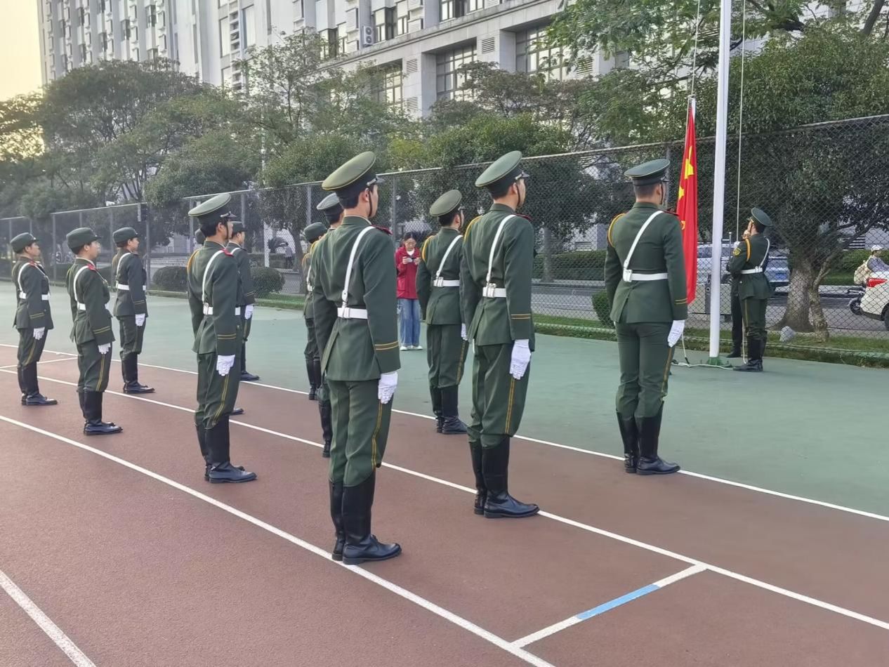早晨7点30,升国旗仪式正式开始。校国旗护卫队队员身着戎装,迈着铿锵有力的步伐护送国旗步入广场。伴随着庄严神圣的《义勇军进行曲》,在场的每一个人都深情地注视着鲜艳的五星红旗冉冉升起。那一刻,每个人激情澎湃、热血沸腾,爱国主义情感油然而生,爱国主义旗帜在心中高高飘扬。