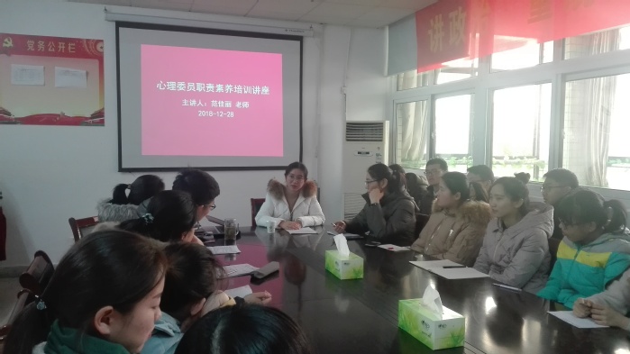 为改善广大班级心理委员工作方法,促进广大同学心理健康,2018年12月28日,2017级邀请心理学教研室范佳丽老师举办“心理委员职责素养”为主题的讲座,2017级全体心理委员及年级辅导员参加了本次讲座。