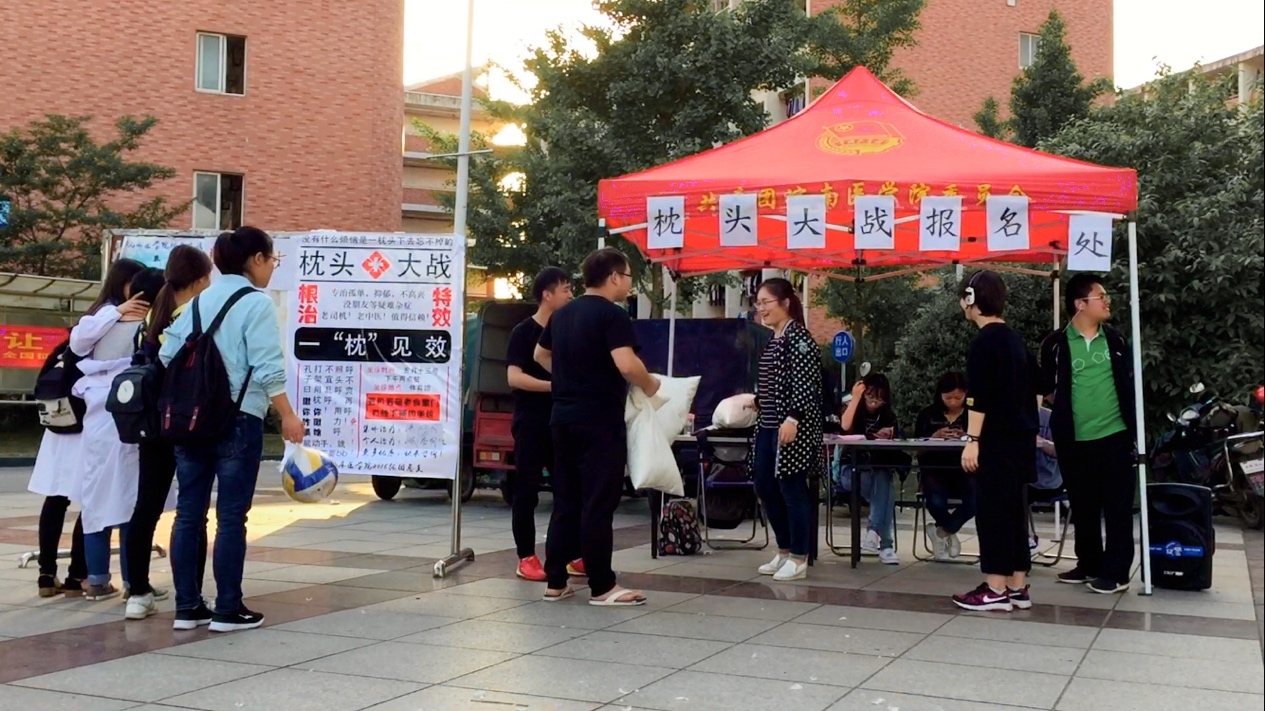 5月9日中午,利来国际2015级员工会成员在老食堂门口组织进行了“枕头大战”线下报名活动,同时运用年级新媒体平台优势,线上QQ,微信,微博,多维度展开宣传,拉开了“枕头大战”活动的序幕。当天,报名现场气氛活跃,来自14个专业的200余位同学报名参加活动,活动参与面覆盖到公司的各个公司、年级。