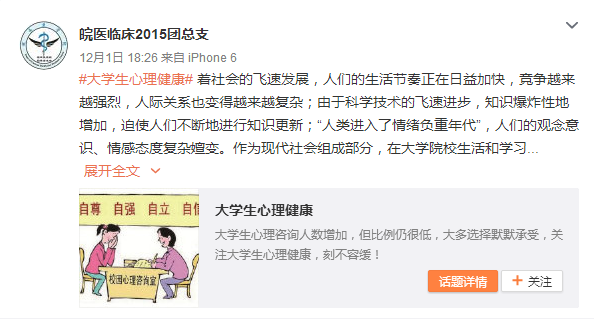 为促进线上线下工作的有机结合,年级积极开拓新媒体平台,通过年级微博、微信公众号及QQ群等网络平台,普及心理健康知识,宣传心理健康维护的重要性,力求做到全覆盖,帮助员工增加心理弹性,坦然面对学业压力和情感困惑,合理规划老员工活,主动制定成人成才目标。