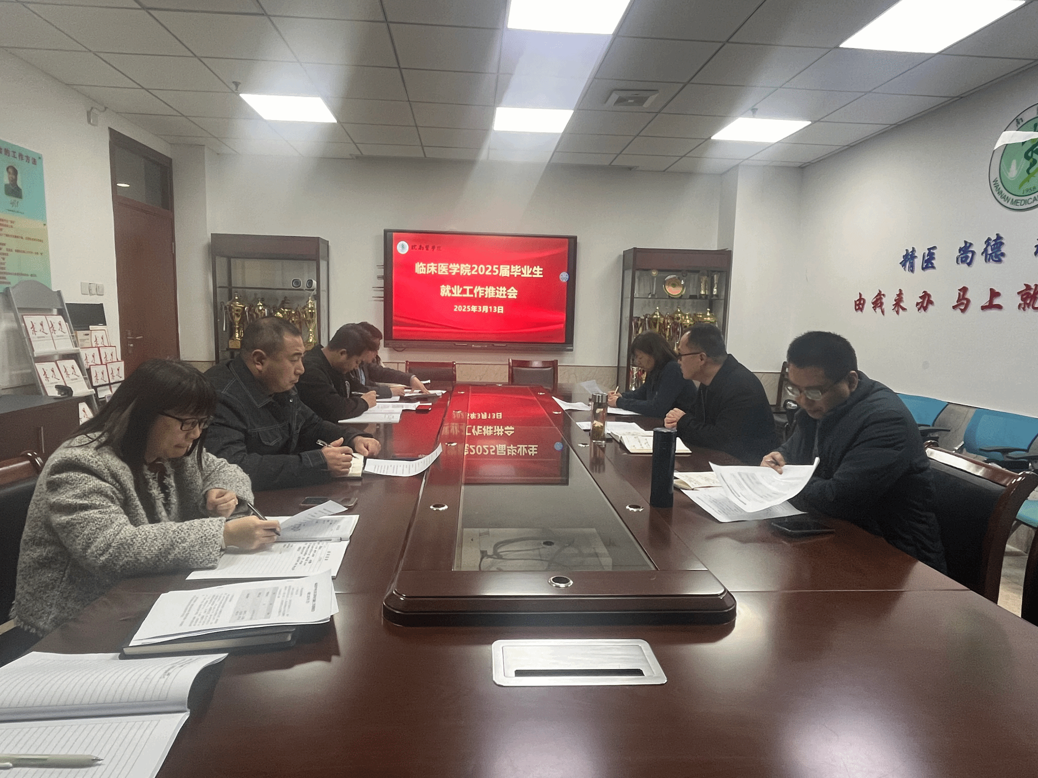 方基勇传达了公司就业工作会议精神,并就做好2025届毕业生就业工作进行部署。他强调,一是加强毕业生能力培训,通过职业素养培训、临床技能强化训练及求职实战演练提升毕业生考研复试及招聘考试竞争力;二是加强住院医师规范化培训政策解读,建立规培就业协同机制;三是深入开展访企拓岗专项行动,推进“实习就业一体化”单位岗位开发,拓宽就业渠道;四是建立困难毕业生动态台账,实施 "一对一" 帮扶;五是做好员工职业观、就业观、择业观引导,引导员工树立先就业后择业观念。