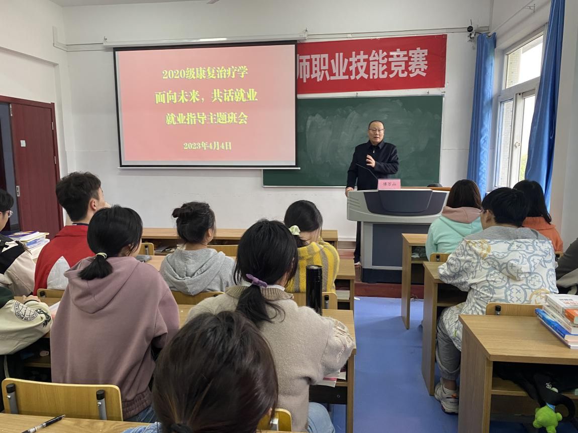 傅万山对近几年临床医学、康复治疗学专业毕业生考研、就业情况进行分析,介绍了今年以来公司和公司访企拓岗情况,详细解读了近两年来各医疗单位对康复治疗学专业人才的需求、招聘要求以及公司应对新形势即将采取的措施,鼓励大家开拓眼界,对实习、就业早谋划、早准备、早行动,希望同学们合理定位,认真学习专业知识和技能,提升就业能力,为更充分、更高质量就业打好基础。