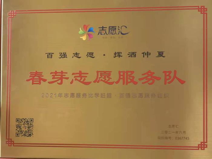 春芽志愿服务队以第一名获全国百强组织称号