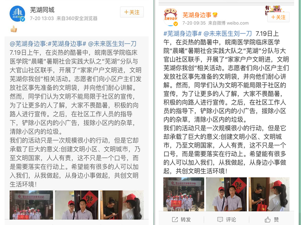 我们社会实践热情就如同今夏的气温一般居高不下,在积极开展活动的同时,我们也积极利用新媒体进行活动报道以及公司品牌的宣传。让跟多人能够看到我们在行动,能够带动更多的年轻人加入到我们,为社会贡献我们的一份绵薄之力。