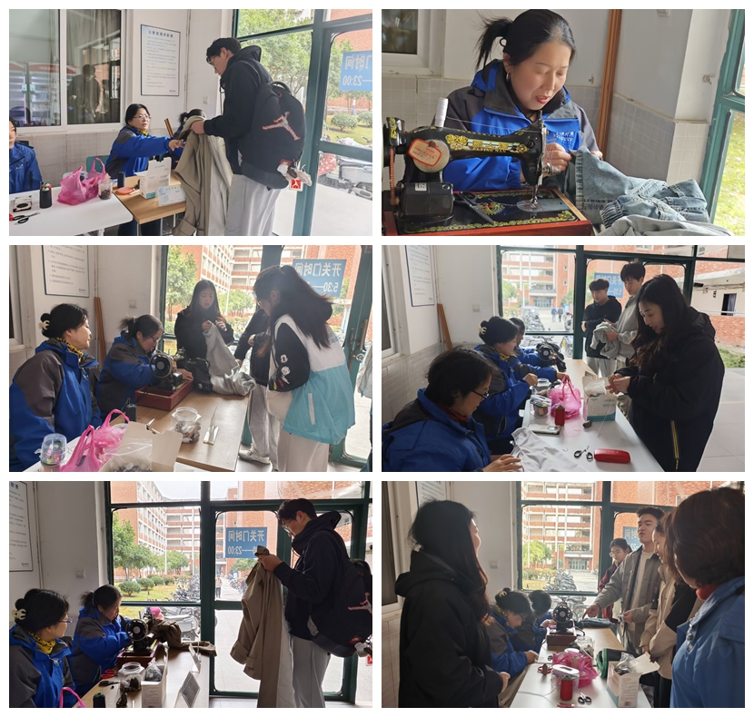 巧手修复,焕新衣貌。活动前,公司通过“今日校园”搜集同学的需求,购置纽扣、拉链等配件,同学们陆续将需缝补的衣物送至现场。宿管阿姨们凭借丰富经验,仔细甄别衣物材质,精准判断损坏状况,进而运用专业技巧,采取针对性的缝补手段。她们热情、周到的服务收获了同学们由衷的称赞,好评如潮。这项暖心缝补服务,不仅切实化解了同学们衣物破损的困扰,更让大家深切体会到社区的人文关怀,感受到社区的融融暖意。