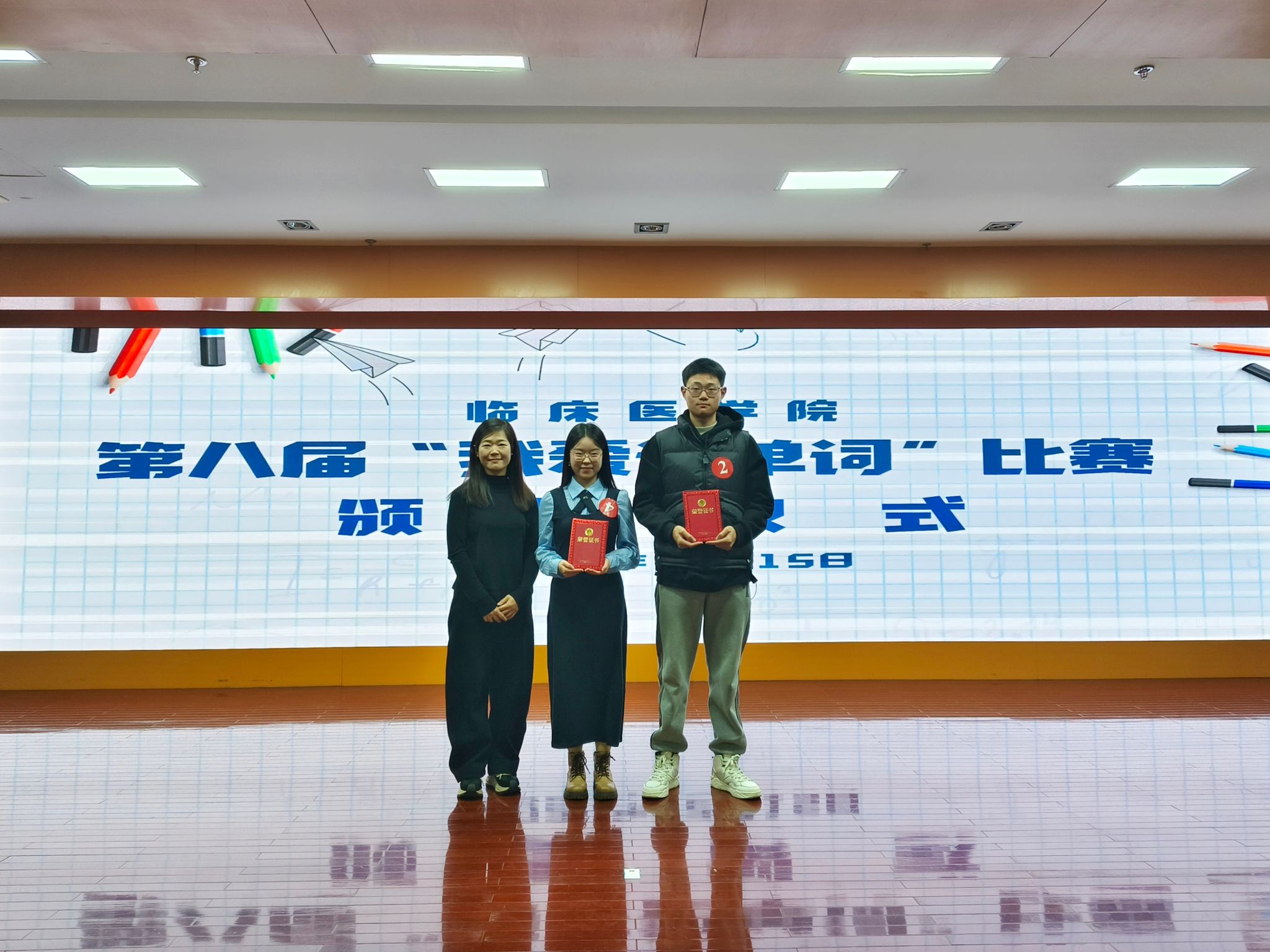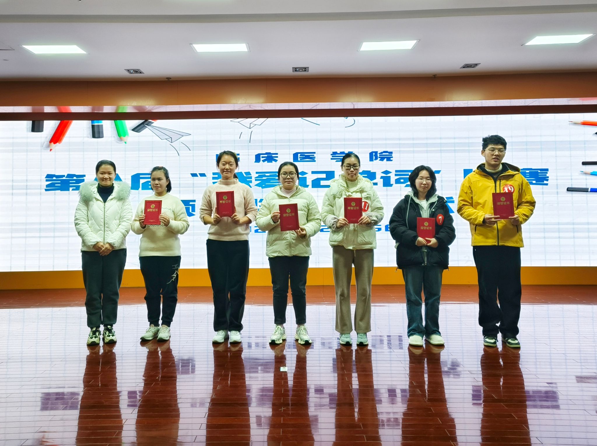决赛采用积分制,分为“词力风暴”“词海探秘”“词宫迷云”“华山论词”四个环节,难度不断增加。“词力风暴”着重考察选手对单个词语拼写、发音的掌握;“词海探秘”与专业英语结合,侧重考察选手对医学英语的掌握情况;“词宫迷云”不仅考察选手对英语语言的熟悉程度,也考察对文化背景的掌握情况;“华山论词”环节请选手随机抽题,围绕“感恩”“节俭”“自律”“谦虚”“责任感”等主题进行90秒主题陈述,对选手的应变能力、文化素养提出了更高要求。比赛过程中,选手们灵活应变、巧妙答题,沉着冷静、字正腔圆,一字一句尽显扎实功底和青春风采,现场气氛热烈,精彩纷呈。