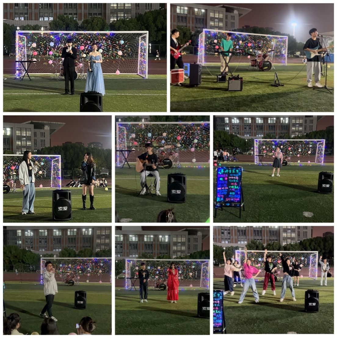 为充分发挥“一站式”员工社区在老员工美育中的积极作用,让同学们在文艺活动中发现美、感受美,9月24日晚,2022级在风雨操场举办“以梦为马 乐动韶华”草坪音乐节。20余名同学先后登台开唱,为现场300余名观众带来了一场视觉和听觉的盛宴。