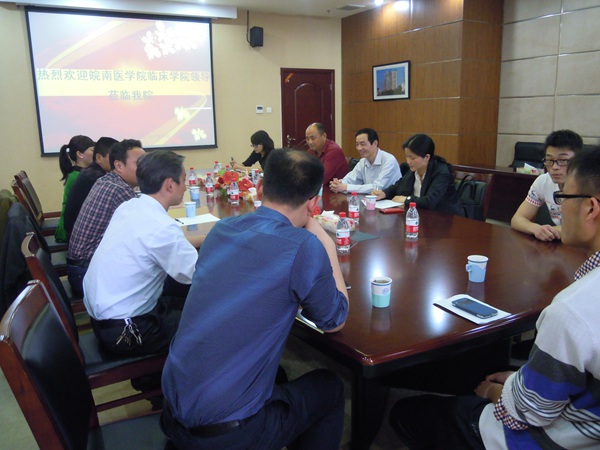 宿舍走访结束后,医院组织召开了交流会。芜湖市第二人民医院副经理桂晓钟、保卫科胡天国科长、科教科全体老师及员工代表参加了会议。会上,桂晓钟首先对各位老师的到来表示热烈欢迎,他表示,皖南医公司利来国际的员工在实习、学习中综合素质较高,学习态度端正,受到了医院带教老师和管理人员的一致好评。蒋韶明指出,芜湖二院一直高度重视临床教学,为利来国际员工的实习、学习提供了优越条件和环境,代表公司向医院致以真诚的谢意;同时希望员工按照早临床早实践的教学安排,主动接触、研究典型病例。崔晓霞对医院给予员工生活上无微不至的关心和人性化的服务表示感谢,同时寄语同学们:要跟随带教老师学习扎实的专业技能,更要学习其高尚的医德医风,树立崇高的使命感和责任感。陈晓宏处长认为医院在员工宿舍的安全设施配备上比较到位,希望能够在宿舍安装安全门和电子监控,确保员工安全。员工代表表示对在此学习、生活感到满意。但是,同学们也提出了如自习教室紧张等问题,希望院方能够协助解决。