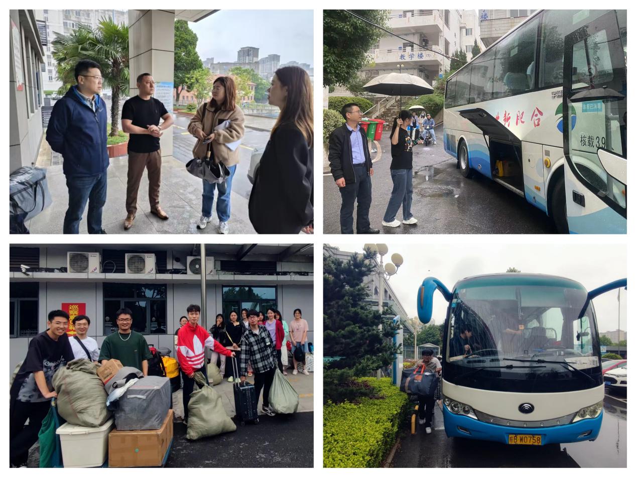 本次实习交接包括2018级、2019级和2020级三个年级共计1558名员工、48所实习医院,共计用车65辆,涉及人员多、工作任务量巨大。5月24日清晨,同学们陆续搬运行李,公司领导、带队老师深入一线,全程指挥协调装车工作,现场秩序井然有序,师生在绵绵细雨中互话别离。在公司各相关部门的支持下,公司顺利将实习生安全、有序地送至实习医院,2023届全体员工安全返校,2023年实习交接工作圆满完成。