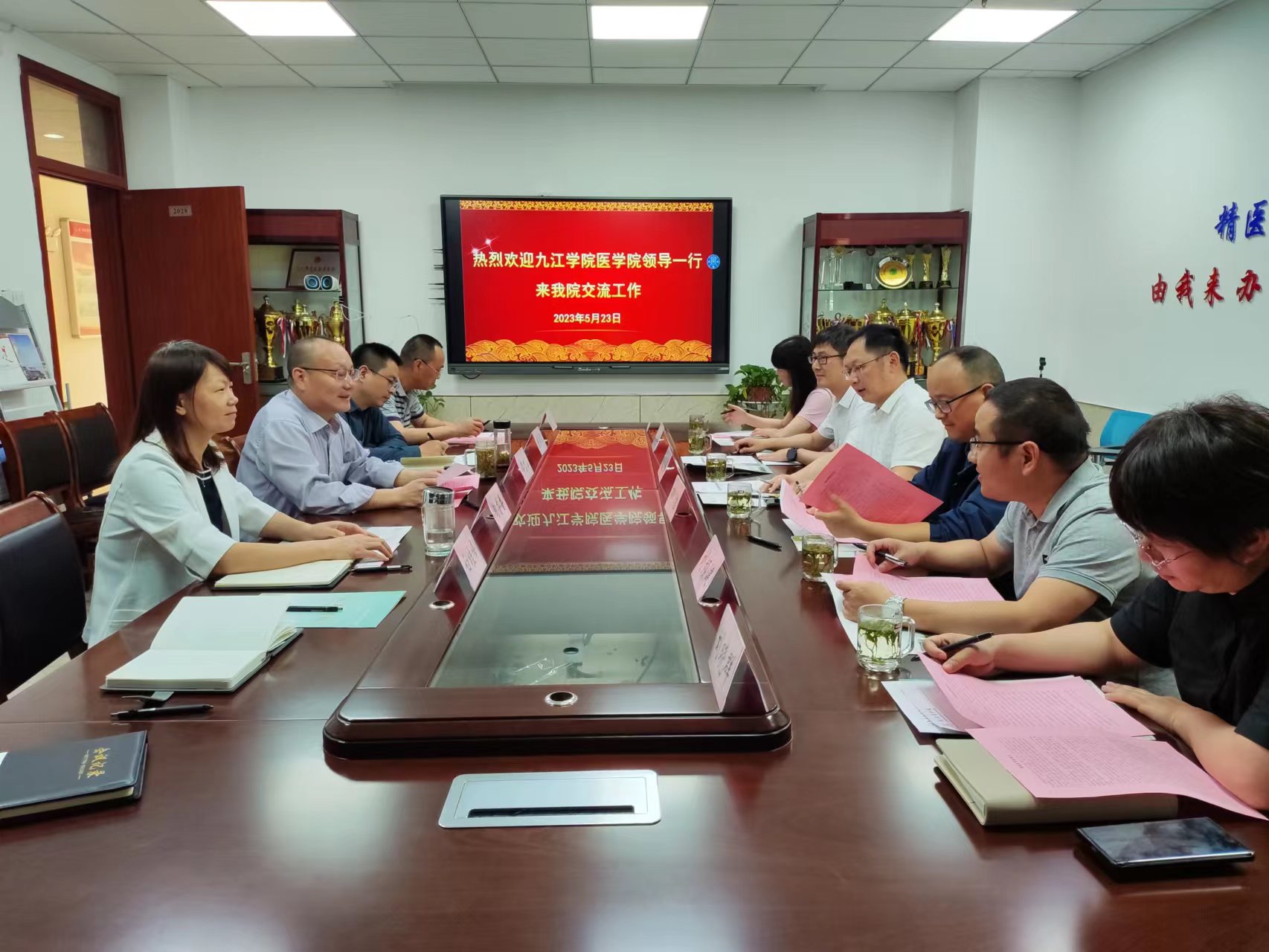 5月23日,九江公司医公司党委书记许晓源等一行6人来公司就学科和专业建设、临床实践教学等相关工作进行交流。利来国际党委书记傅万山、副经理陈祥攀、党委副书记陶香香等参加会议,会议由副经理陈祥攀主持。