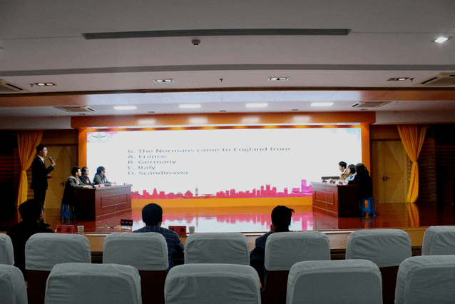 决赛由看图识词、词义辨析、知识抢答三个环节组成,“看图识词”着重考察选手对单个词语拼写、发音和释义的掌握;“词义辨析”侧重考察选手对于近义词的准确辨析和熟练使用;“知识抢答”则不仅考察选手对英语语言的熟悉程度,也考察对英语文化背景的掌握情况,对选手的应变能力与文化素养提出了更高要求。比赛过程中,选手们冷静应答,灵活应变,积极主动,巧妙应对,赛场气氛十分热烈。同时,屏幕前的观众们通过互动环节融入到比赛当中,增添了比赛的乐趣。康勇老师赛后作了精彩点评,对同学们的英语学习提出了宝贵建议,分享了提高英语水平的方法。