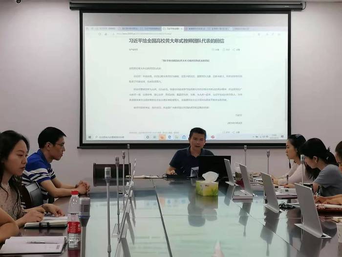9月25日,公司全体教职工在4号实验楼5楼会议室召开专题学习会。会上,公司党委委员柴智明带领大家共同学习了习近平给全国高校黄大年式教师团队重要代表的回信、《新时代高校教师职业行为十项行为准则》、《皖南医公司关于在师德专题教育中开展师德师风建设问题专项整治工作方案》、《皖南医公司关于师德师风负面清单和失范行为处理暂行办法》;通报了教育部师德警示教育违反高校教师职业行为十项准则的典型案例;共同观看了讲述黄大年事迹的纪录片《难忘初心》。