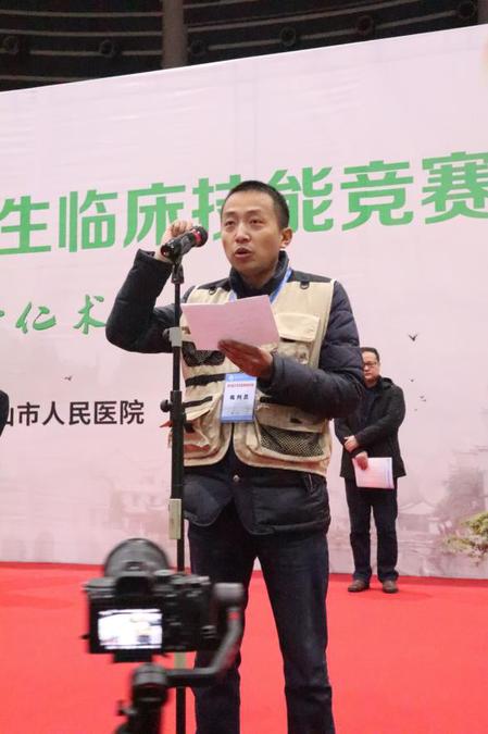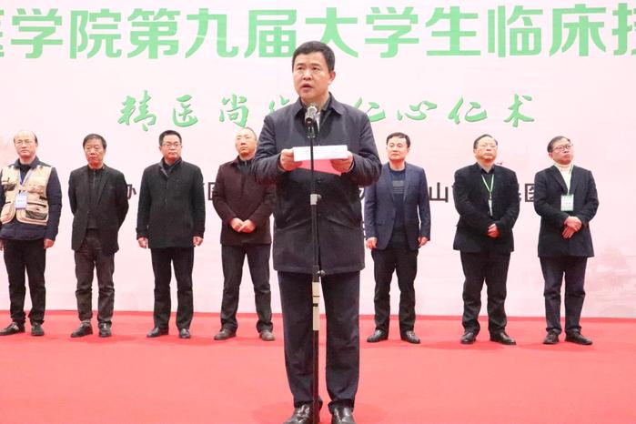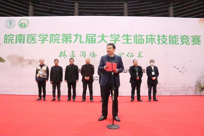 廖圣宝致开幕词。他首先代表公司对参赛医院的专家和选手表示热烈欢迎,向为本次竞赛付出辛勤劳动的工作人员和志愿者们表示衷心的感谢。他指出,近年来,公司各项事业蓬勃发展,临床医学学科2019年进入并稳定在ESI全球排名前1%,获批安徽省高峰学科。临床技能大赛是检验人才培养质量的重要举措,也是是落实公司质量立校、加强专业内涵建设的重要路径,同时也是推动临床实践教学改革和医教协同的重要手段。希望各参赛单位以竞赛为平台,促进临床教学的交流与合作;以竞赛为契机,达到“以赛促练、以赛促教、以赛促学、以赛促改”的目的,传递“尚医德、兴医术、奉医道、展风采”的竞赛理念,全面提升公司临床医学专业员工的临床思维能力、实践创新能力和医学人文素养。黄山市人民政府副市长张正竹和黄山市卫健委主任方克家分别致辞,对公司培养医学人才助力区域医疗卫生事业表示感谢,同时对本次大赛在推动校地合作,培养高层次医学人才表示高度认可。