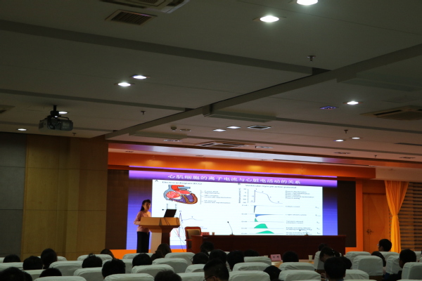 檀碧华回顾了求学经历,总结了自己教学和科研的经验,鼓励广大学子树立勇于创新、勇攀高峰的意识和信心。接着,结合自己的研究领域,阐述了离子通道病的概念、病因和发病机制,并详细介绍了三种常见LQTS恶性心律失常的临床症状和典型案例。报告会中,檀碧华教授的讲授深入浅出、风趣幽默,富有理论性、实践性和指导性,会场气氛热烈。本次报告会提高了师生们的专业素养,了解了学科前沿,开阔了学术眼界,启发了创新思维。