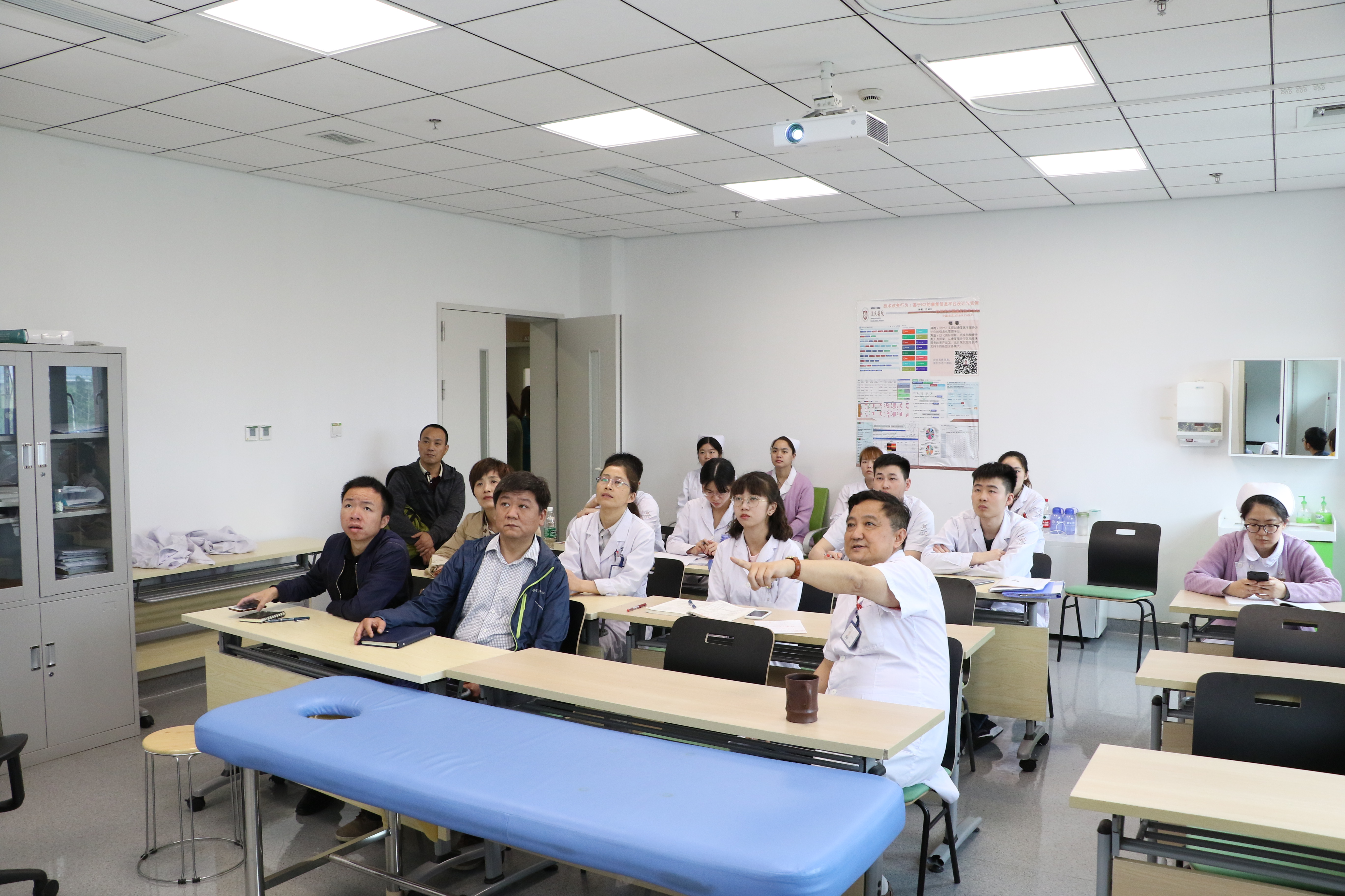 在康复中心主任、博士生导师江钟立教授的陪同下,参观了逸夫医院的康复医学科。江钟立教授介绍了南医大康复公司和逸夫医院康复医学科的管理模式、学科发展、团队力量、人才培养等方面的情况,并亲自演示讲解了由其自主开发研制的康复信息系统。