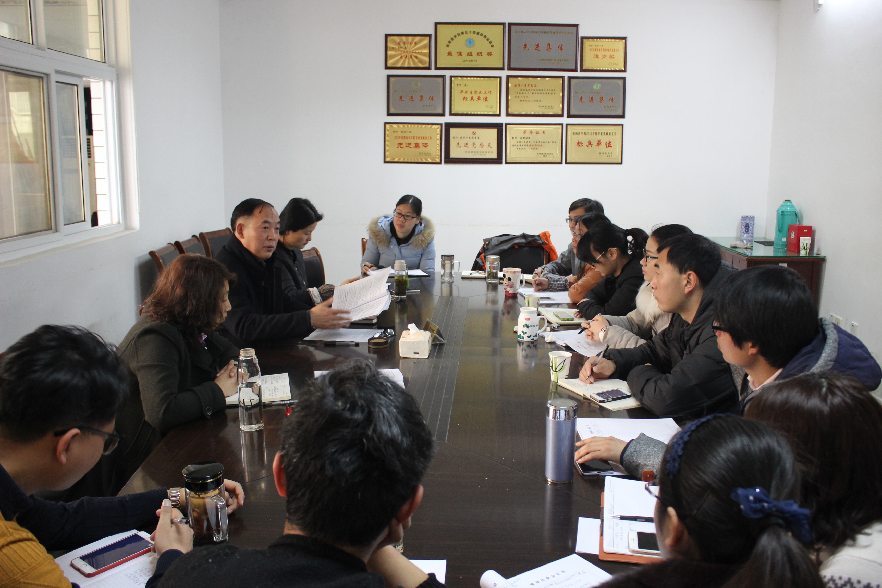 首先,戴睿向大家传达了校第七届党代会、第七届教代会暨第六届工代会第四次会议精神,解读了公司党委书记王先俊在会上所作的题为“强化五个发展导向、突出四个战略重点,为实现‘十三五’良好开局不懈奋斗”的报告,回顾了公司2015年所取得的成绩,结合公司和公司实际,布置了公司2016年的重点工作。随后,戴睿又带领大家学习了《皖南医公司事业发展第十三个五年总体规划(草案)》。,介绍了公司“十三五”期间面临的机遇和挑战、指导思想和发展目标以及主要举措。