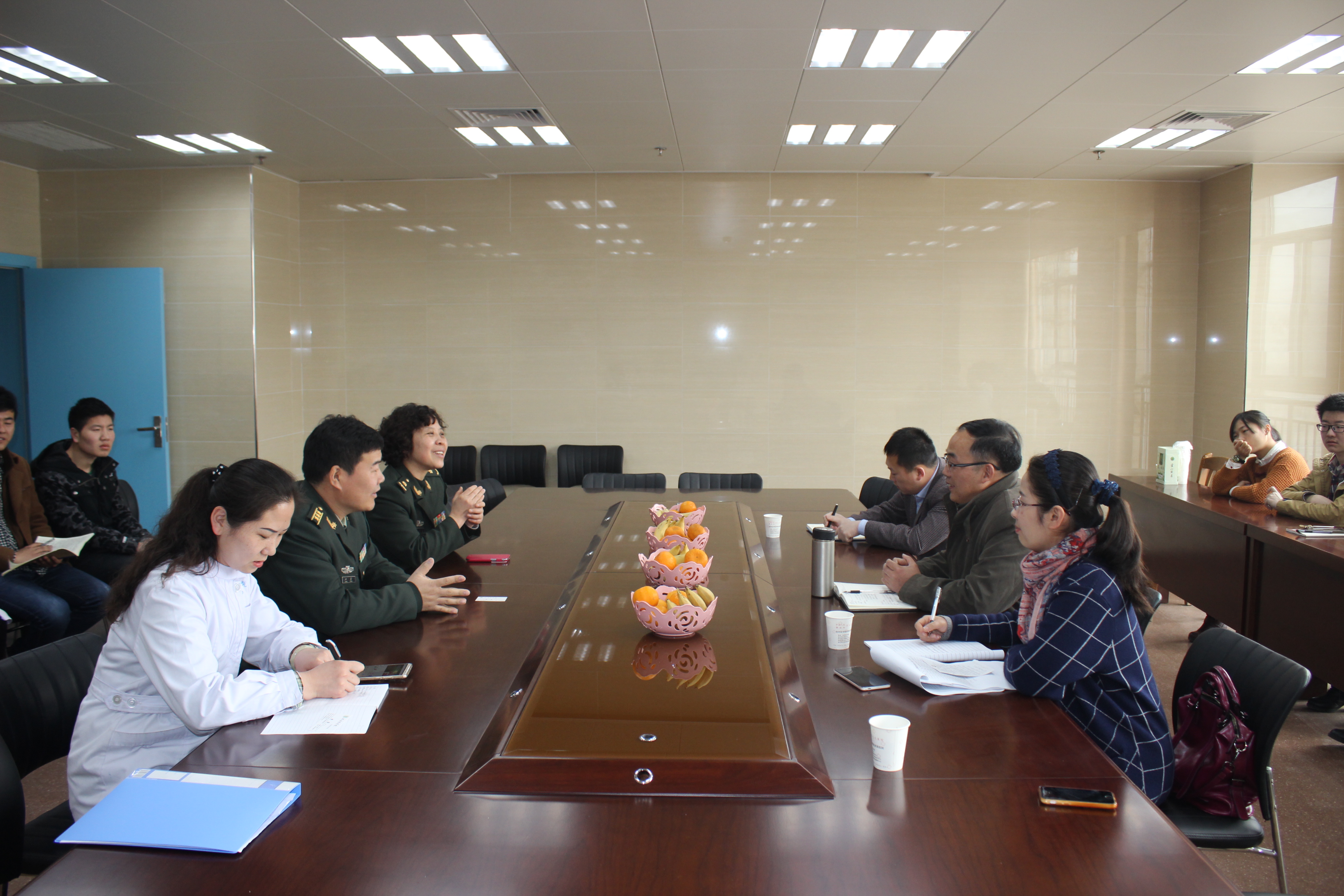 3月17日-18日,利来国际党总支书记戴睿、秘书王平和2012级辅导员汪楠楠、汪国瑞,前往中国人民解放军第123医院和解放军第97医院看望实习员工,并与医院领导进行座谈,深入了解员工实习情况。会上,戴睿分别与解放军第123医院副经理王振德和解放军第97医院副经理赵勇及科教科相关负责人进行了深入交流,院方充分肯定了公司实习生的实习表现,希望双方能在今后多交流沟通,进一步加强合作,共同提高实习带教水平。