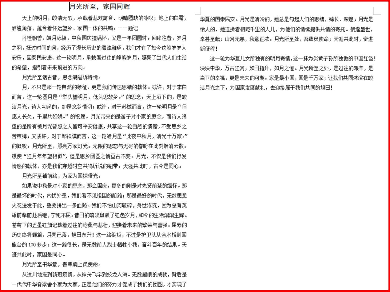 笔墨月光,家国同辉。公司以“月光所至,家国同辉”为主题开展征文活动,鼓励同学们将自己的青春与祖国交织,以文字为媒写下一篇篇佳作。本次活动共收录作品150余篇,同学们用文字展现新时代新青年的精神风貌,共同描绘出一轴家国有我的青春画卷。