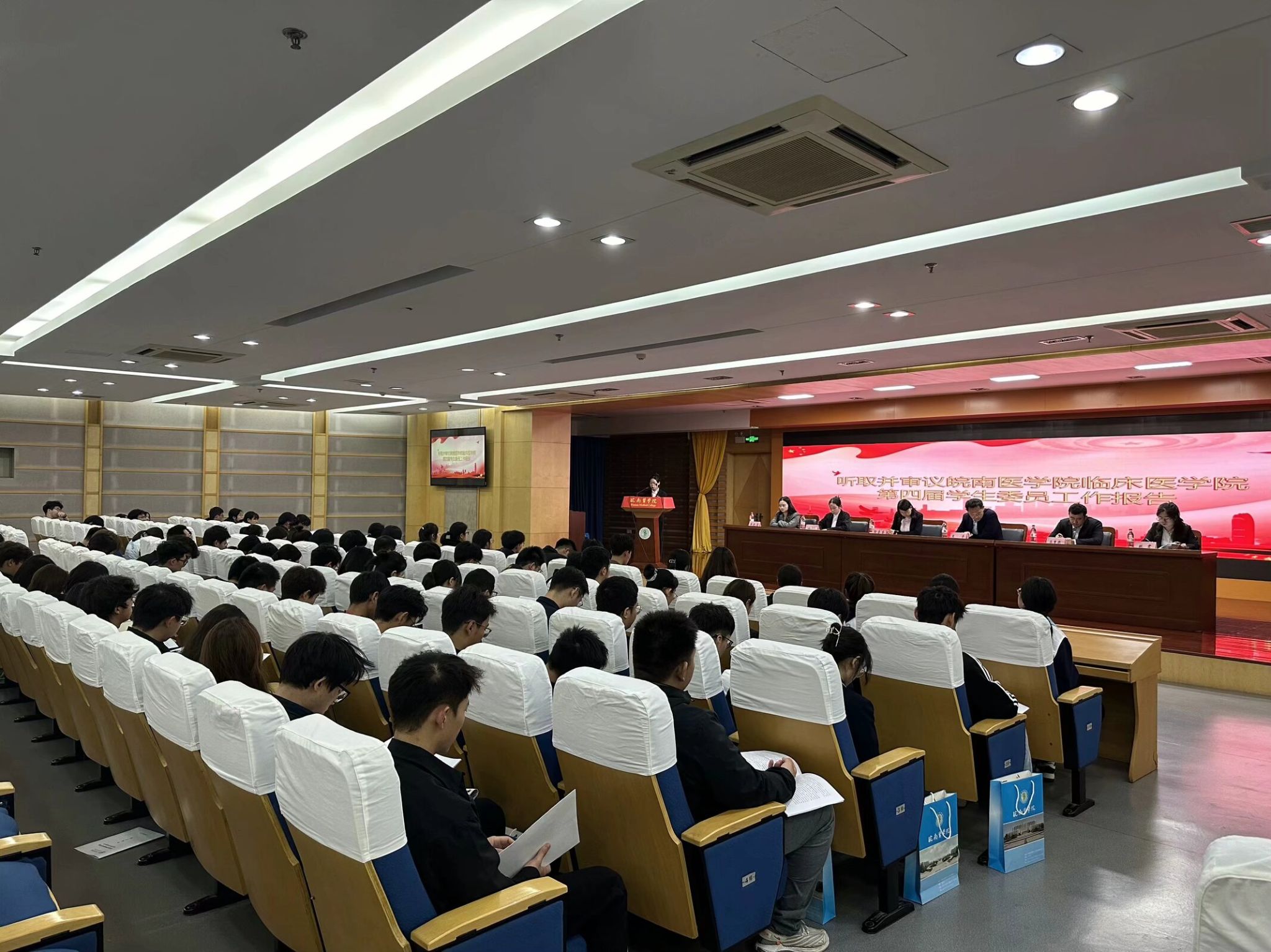 11月10日晚,共青团皖南医公司利来国际第五次员工代表大会在图书馆三楼报告厅召开。利来国际党委副书记陶香香,公司团委书记王平,团委副书记徐祎、苏曹骢,各年级团总支书记以及70名员工代表参加大会。