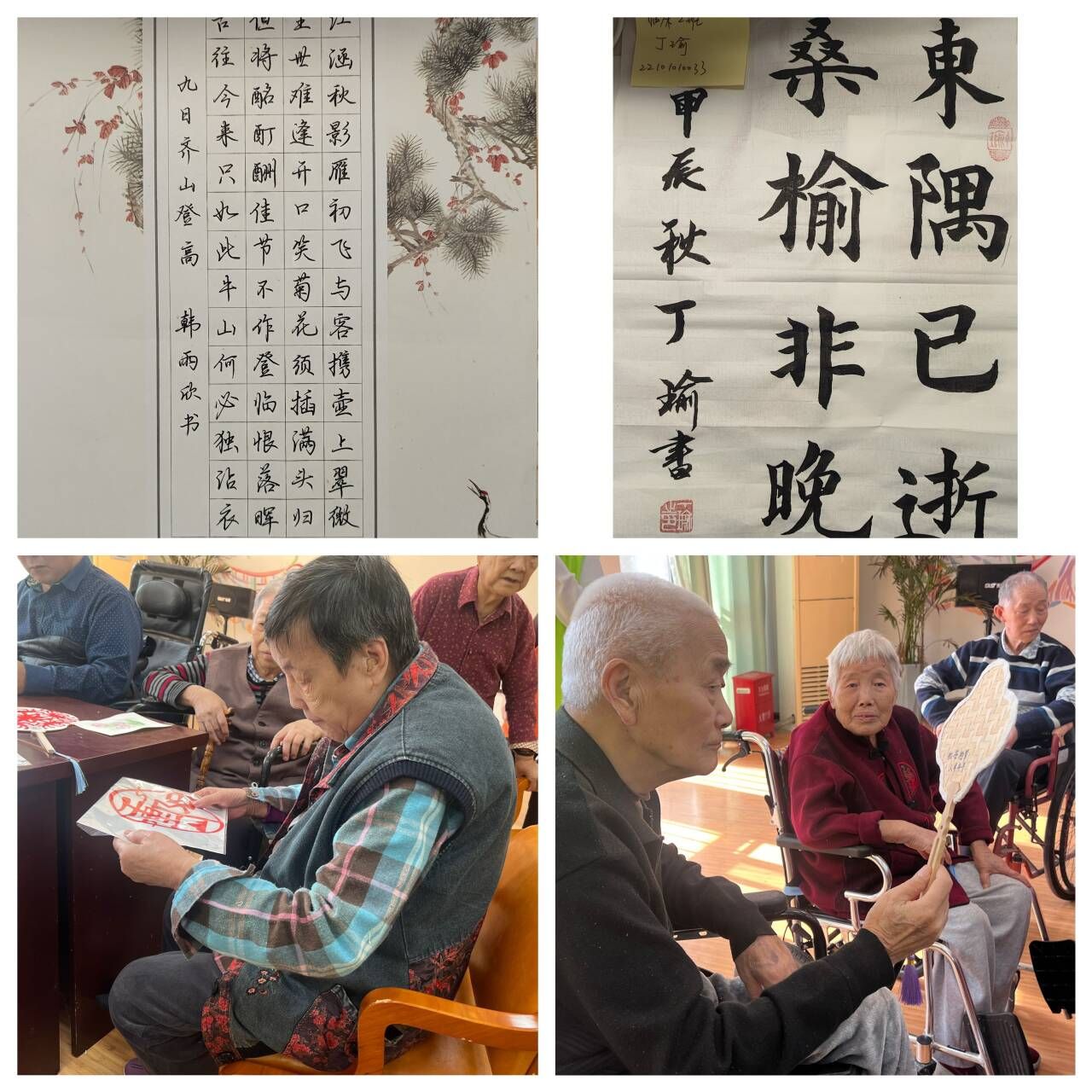 活动中,“医心”志愿服务队的同学还将国庆节期间在年级征集到的以敬老、孝老为主题的书法、手工等优秀作品,作为礼物送给照护中心的老人们,并献上了最诚挚的祝福。收到礼物后,老人们纷纷表示感谢。