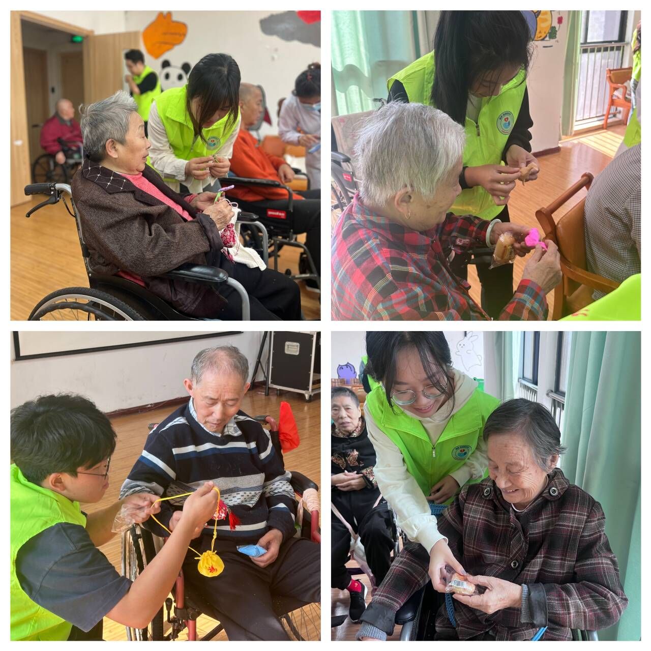 情系桑榆晚,爱洒夕阳红。10月15日,“医心”志愿服务队成员一同来到芜湖市金太阳长者照护中心,举办“倾情关爱 情暖桑榆”系列活动。活动伊始,志愿者们和老人们一起制作香囊。志愿者首先向老人们介绍香囊的功效和制作步骤,老人们挑选完香囊样式后,又根据自己的喜好将不同的香料装入香囊中,不一会儿,一个个散发香味的香囊跃然成型,这些香囊不仅能散发出阵阵清香,还能起到安心凝神的功效。照护中心的老人们纷纷表示,感谢志愿者们的用心让他们体会到了社会的温暖与关爱。