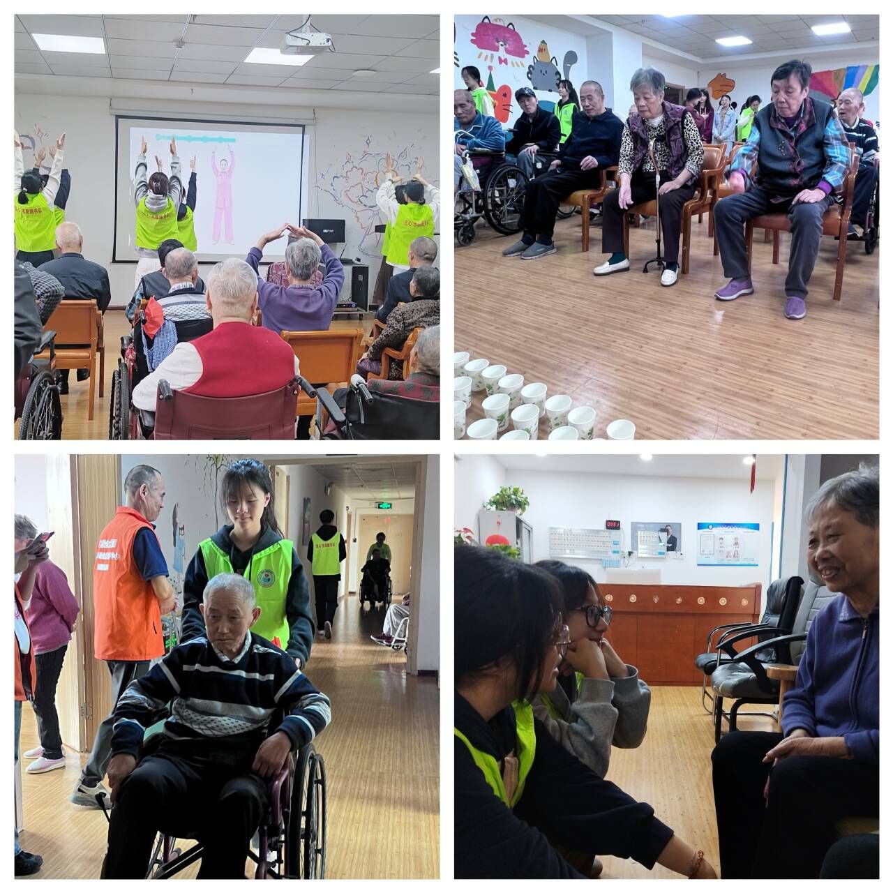 接着,志愿者们带领老人们参与到“强身健体,活力养生”八段锦运动中。志愿者为老人详细讲解每个动作的要领和注意事项,并亲身示范。此次活动旨在推广健康的生活方式,让老人们了解并掌握八段锦这一中国传统健身方法,从而起到增强体质、预防疾病的保健作用。
