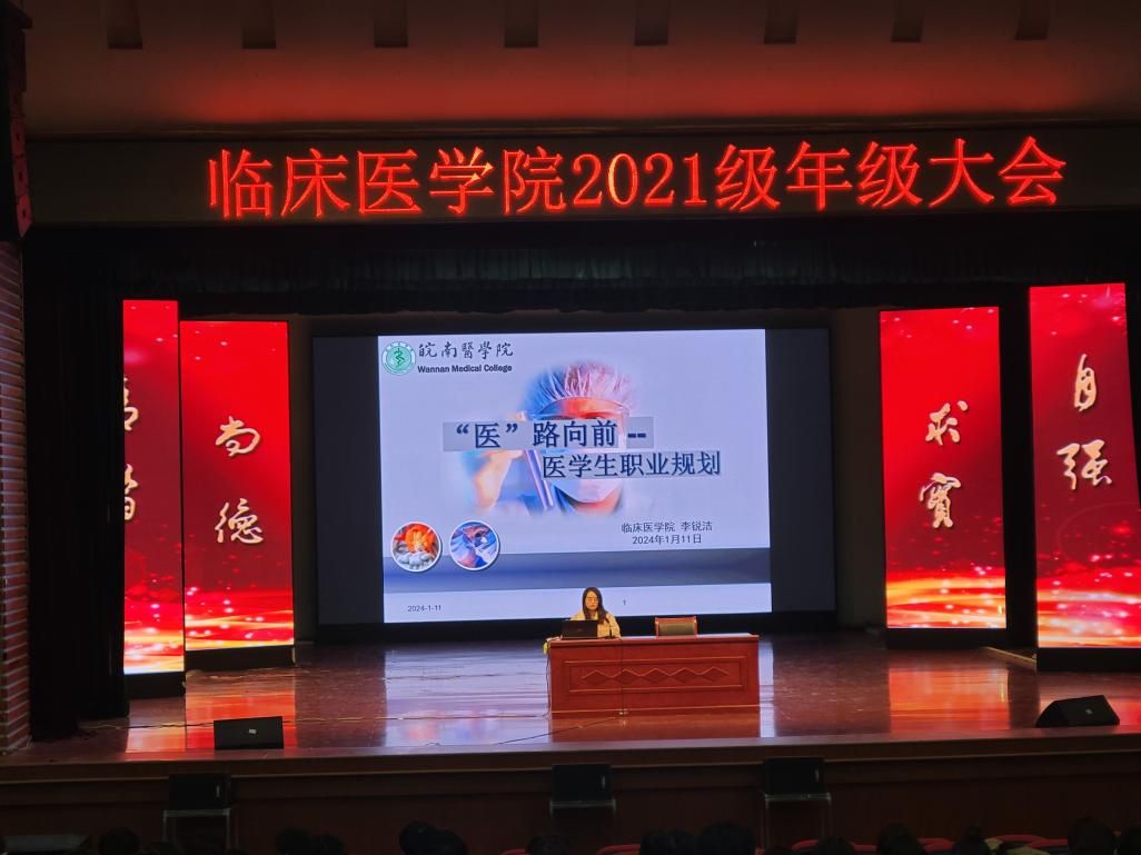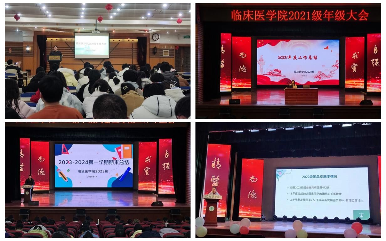 榜样示范强引领。为充分发挥先进典型的榜样示范、教育引领作用,营造良好学习氛围,激励青年学子坚定理想信念,以奋进姿态展现新作为、创造新业绩,相关年级依托年终总结会开展榜样示范宣讲,邀请2017届毕业生、皖南医公司第一附属医院急诊内科汪镜静以“起点与未来:青年医生的成长之路”为题进行经验分享,邀请2022级国家奖学金获得者王雨桐以“怀揣星辰 行则将至”为题分享个人学习经验,邀请2022级暑期社会实践活动优秀个人余国正以“青春助力访金寨 医改同行助平安”为题作暑期社会实践活动经验分享。