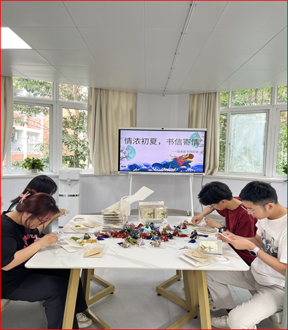 佩带香囊既是一种民俗,也是一种预防疾病的方法。6月16日,社区举办“巧制香囊 祝福常在”活动。同学们在裁剪、填充、缝合、收口等步骤中,互相交流,互相学习,在一针一线中,倾注自己的祝福,并将活动中优秀诗歌写在贺卡上表达对亲朋好友的祝福与问候,共同感受着传统文化的魅力。