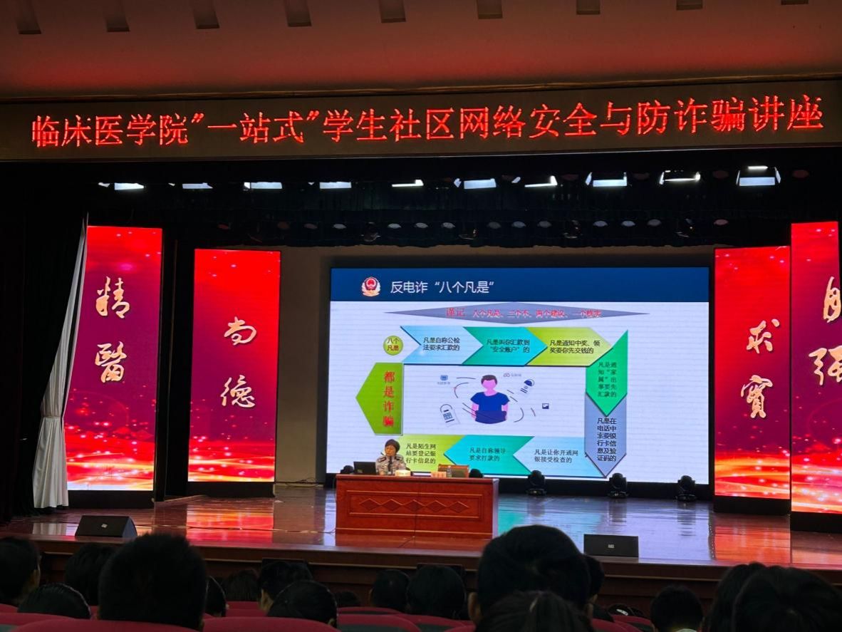 讲座中,张韩秋结合大量真实案例和数据分析,从人身安全、财产安全等方面向同学们普及安全知识,重点介绍了网络安全和电信诈骗的常见方式、手段,传授了安全防范技能,提醒同学们文明上网,时刻保持警惕性,同时增强识骗防骗意识和能力,防止上当受骗。