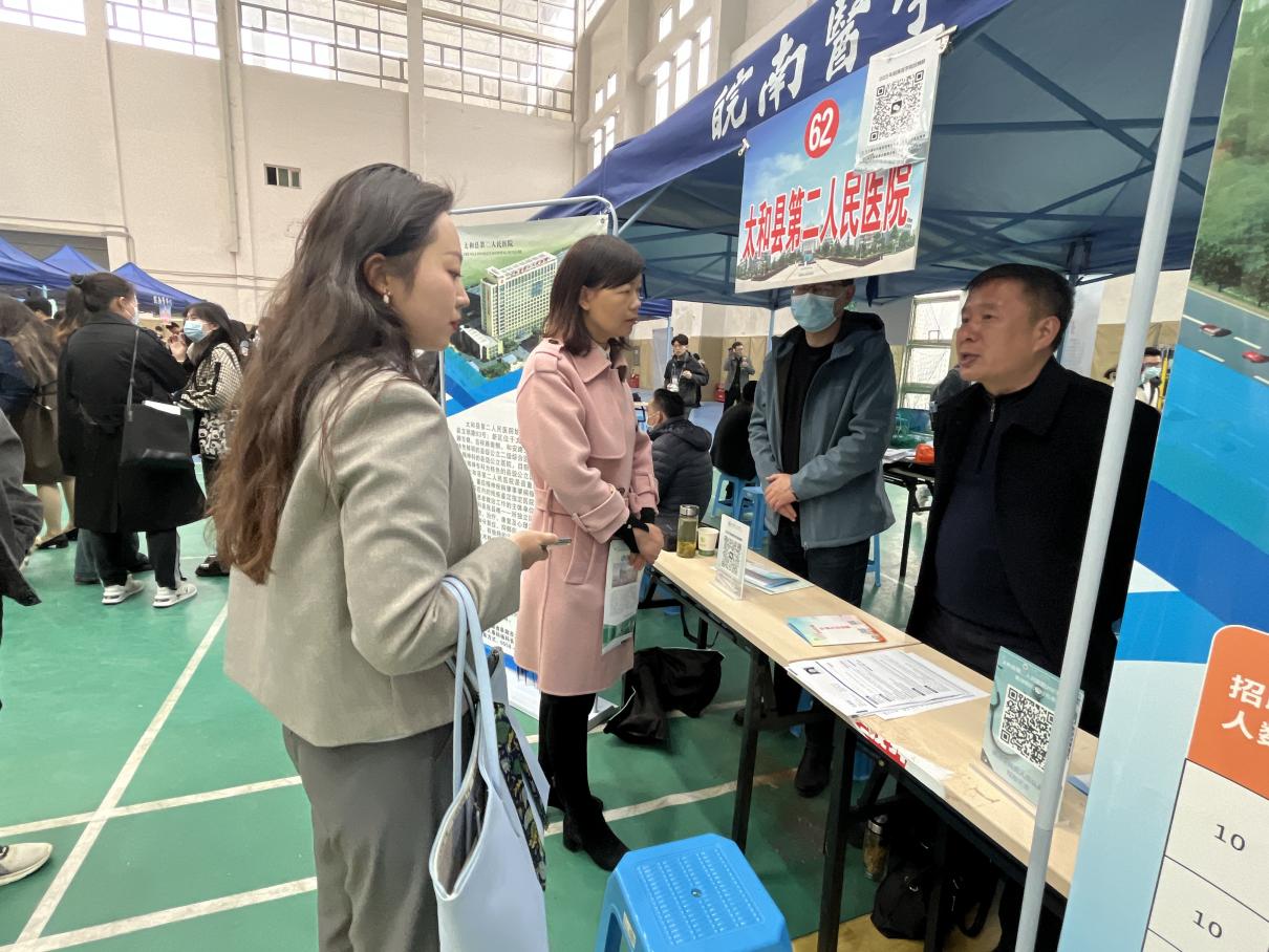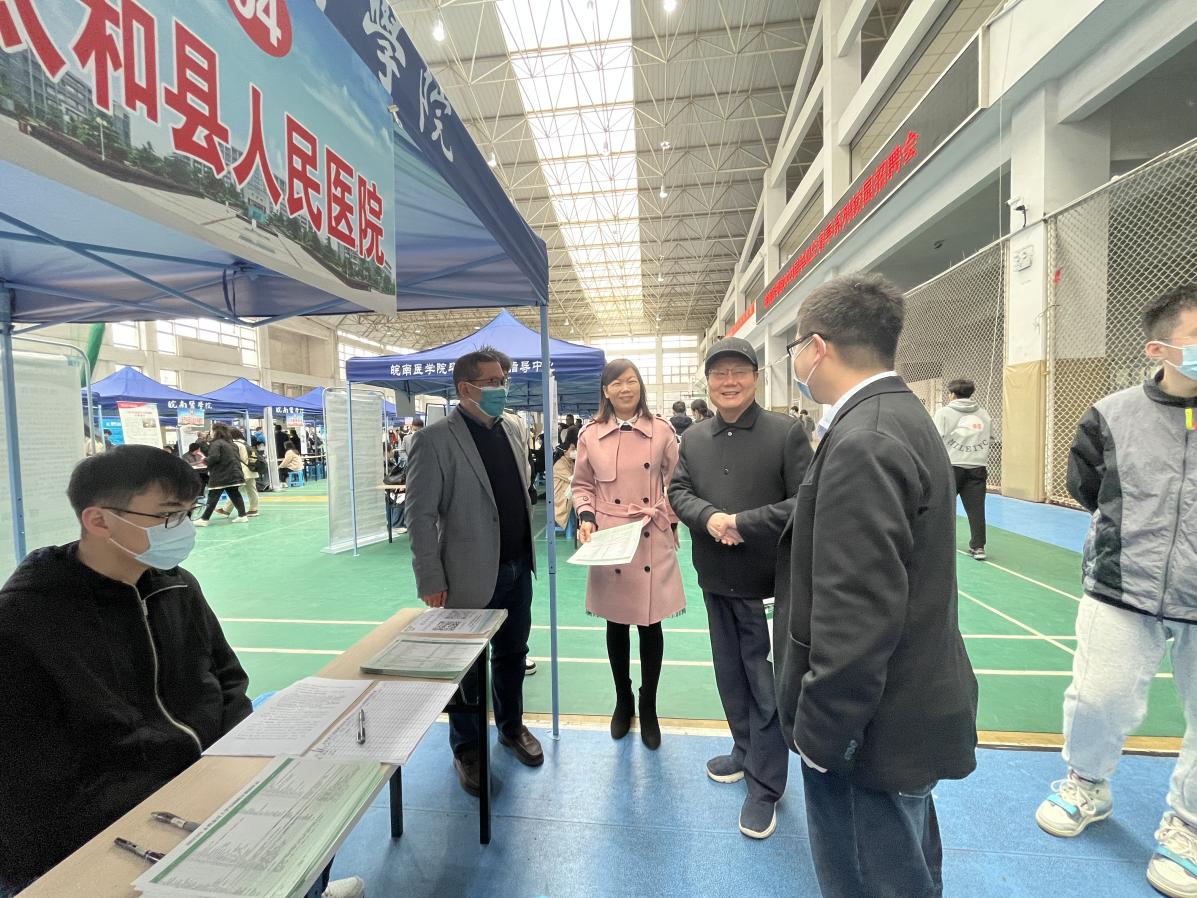 利来国际党委书记傅万山、副书记陶香香带领毕业班辅导员以及员工工作秘书前往招聘会现场,主动与招聘单位对接开展深入交流,搭建就业平台;为毕业生提供就业指导和咨询服务,动员员工积极报名参加招聘;协助含山县人民医院、太湖县人民医院等医院做好笔试面试准备、后勤保障和考试组织工作。