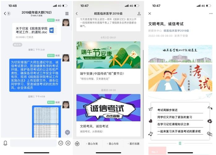 各年级通过QQ、微信公众号等网络新媒体,开展线上专题教育,切实把考风考纪工作抓在手上、落到实处,有效提高了同学们的思想认识,端正了考试态度,营造了诚信考试、诚实做人的氛围。