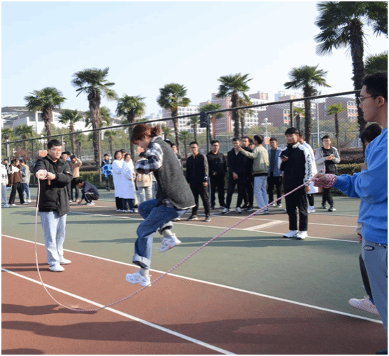 趣味传递快乐,运动展示风采。11月20日上午,2021级在公司风雨操场成功举办趣味运动会。本次活动共有五百余人参与,同学们热情高涨,积极参与,本次活动共设“生死时速”、“生命的律动”两项团体项目及“医脉相传”、“心有灵犀”两项个人项目。“生死时速”中,同学们力争分秒,步伐一致地抬着担架向着终点奔进,气氛热烈;随着跳绳有节奏地起落,同学们配合默契,感受“生命的律动”;乒乓球传递过程中同学们冷静应对,不断摸索新的方式解决困难,让我们感受到了“医脉相传”的真谛;“心有灵犀”,便能够步伐一致,相互扶持,走的更远。